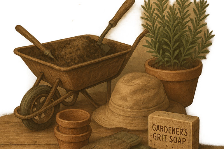 Gardener’s Grit is a cold process tallow soap recipe made for hardworking hands. Built on Grandma’s trusted base formula, this scrubby exfoliating bar features natural grit like pumice or oats to gently remove dirt after gardening, homesteading, or outdoor work. In this cozy Soapmaking Hobby journal entry, you’ll find the full recipe, tips for adding exfoliants at trace, scent suggestions, and curing guidance.
