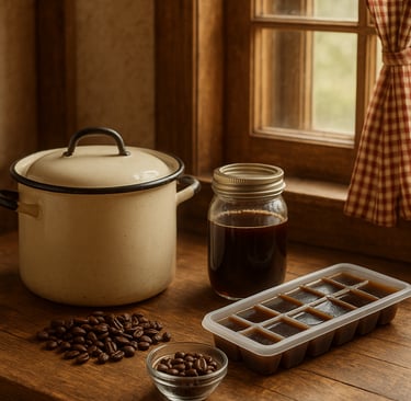 1. Brew your coffee the day before — strong and dark. Let it cool (or freeze into cubes).